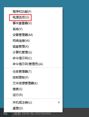 1、按键盘上的“Windows徽标键+X”组合键,在出现的菜单中选择“电源选项”;
